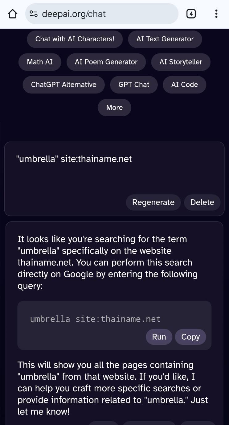 มี meta , deepai ที่ไม่ค้นข้อมูลมาให้