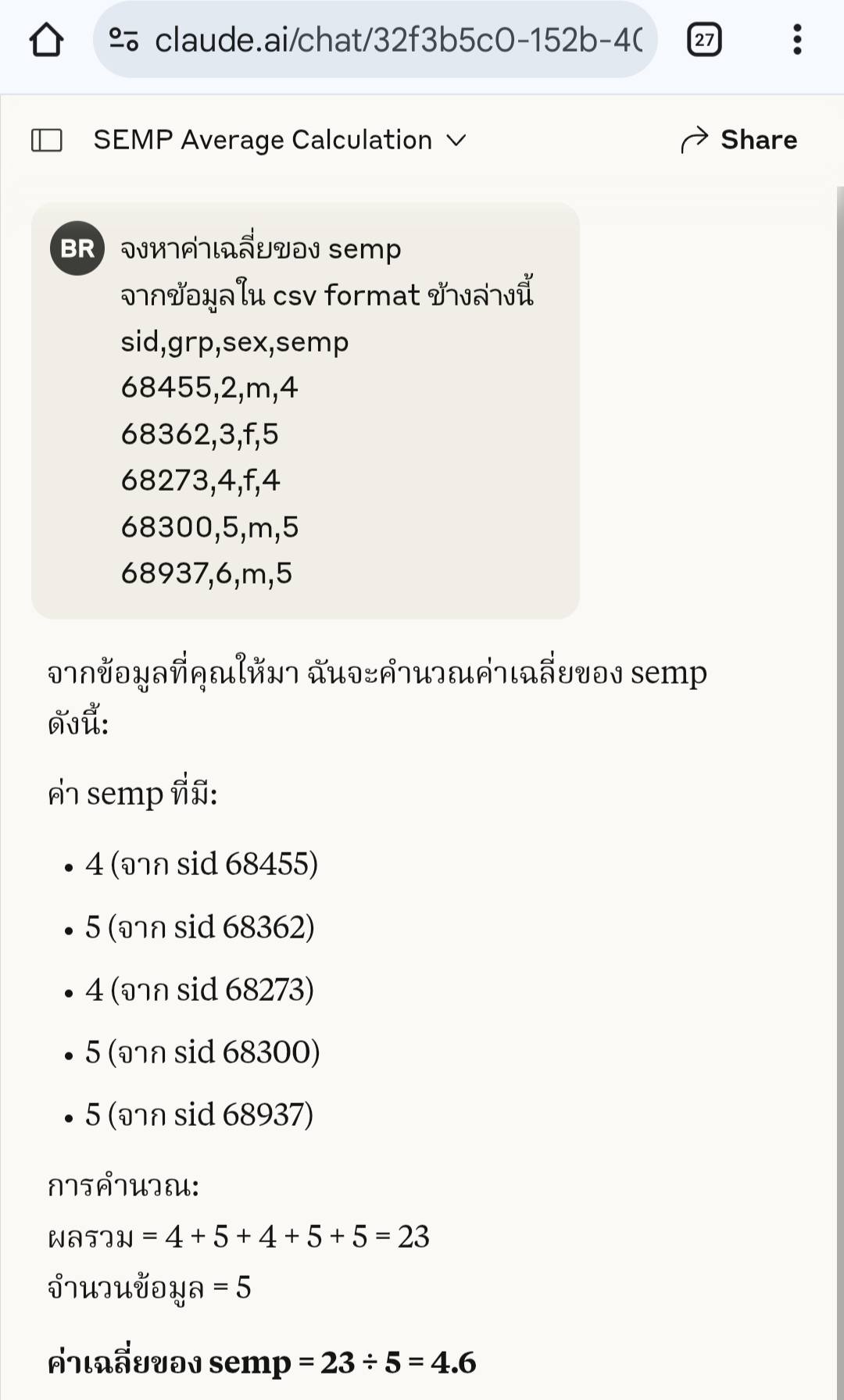ก ารหาค่าเฉลี่ยจากตัวแปรหนึ่ง พบว่า ผลทดสอบกับ เอไอ 8 ตัว (ฟรี) หาค่าเฉลี่ยจากข้อมูลแบบ csv ได้ทุกตัวหมด