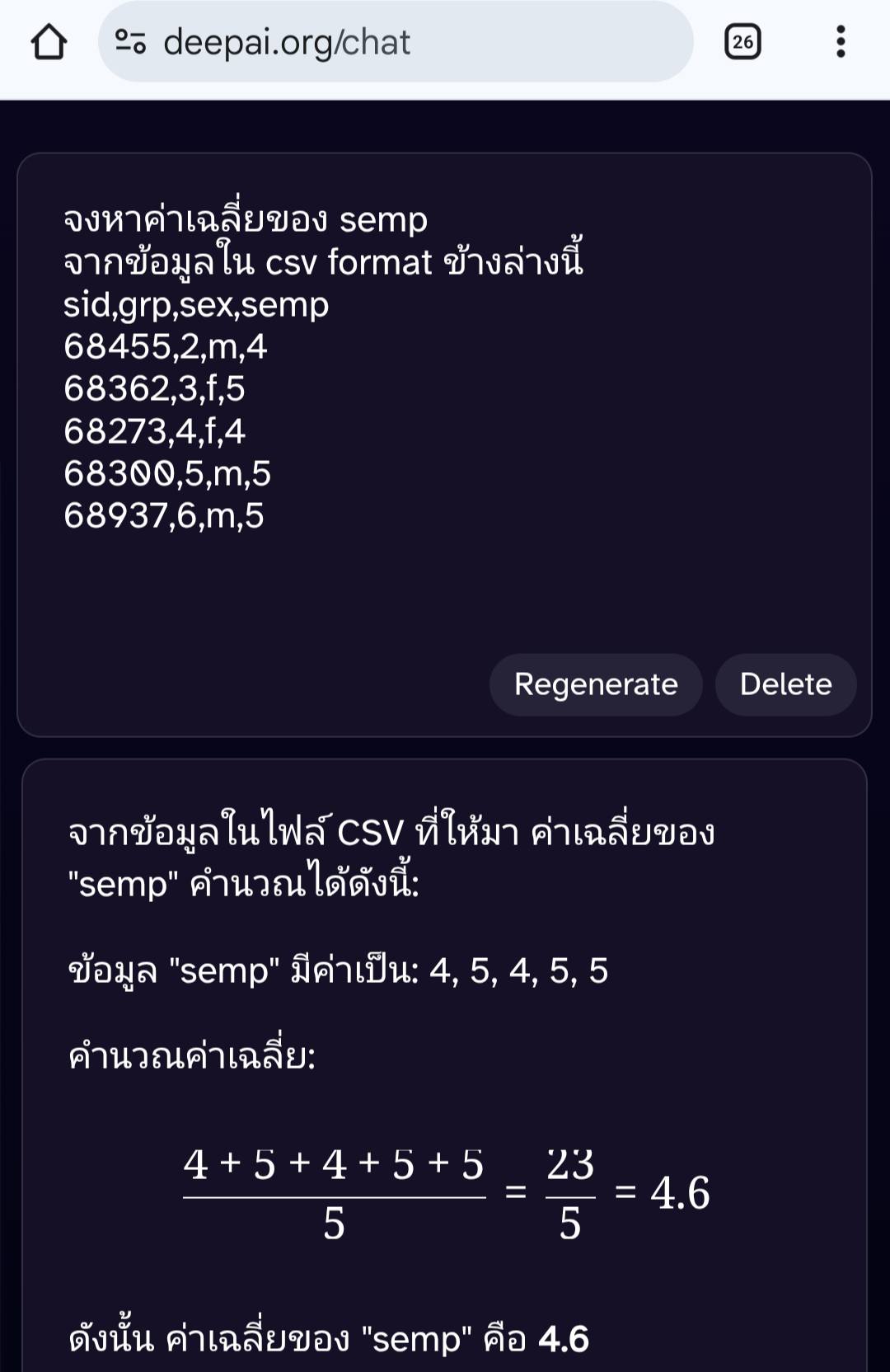 การใช้เอไอหาค่าเฉลี่ยจาก CSV-Format Text